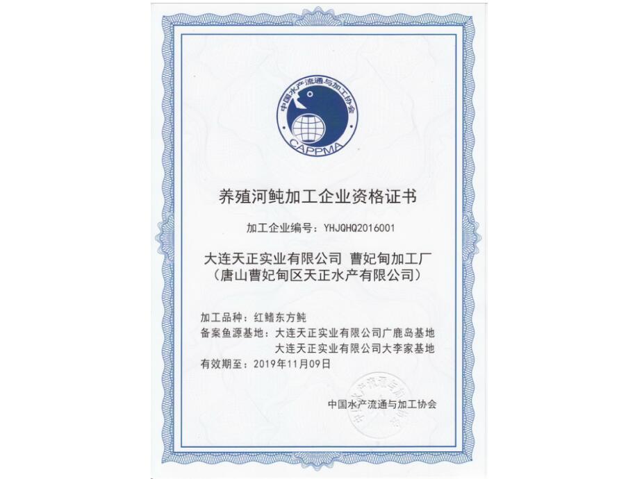 2017年3月6日,江南官方网站获中国水产流通与加工协会正式颁发《养殖河鲀加工企业资格证书》