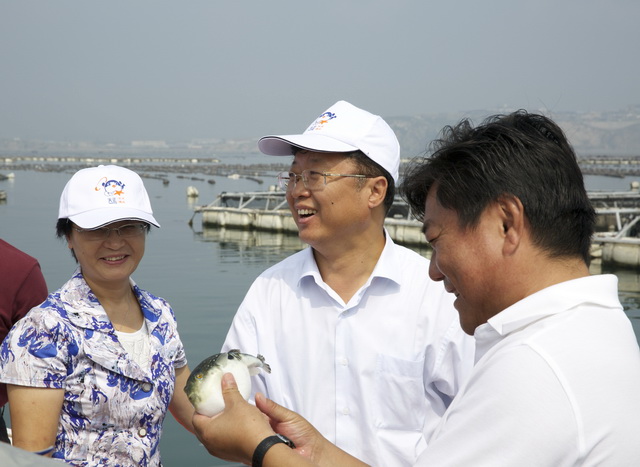 9月14日,国家食药总局滕佳材副局长等领导视察参观完江南jiangnan(中国)河鲀大李家海上养殖基地后,在大李家养殖场会议室听取了江南官方网站董事长孟雪松的汇报,并作出重要指示。