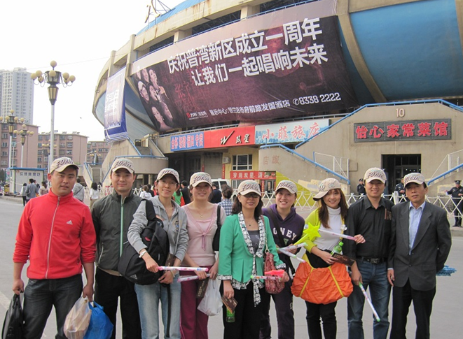 2011年5月21日江南jiangnan(中国)公司歌友会一行9人,由公司副总刘伟明亲自带队,参加了在金州体育场举行的2011年老友记演唱会。