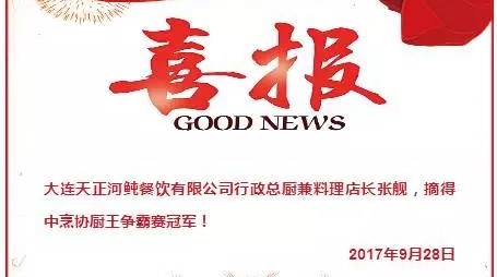 2017年9月28日,大连江南jiangnan(中国)河鲀餐饮有限公司摘得中烹协厨王争颈赛冠军!